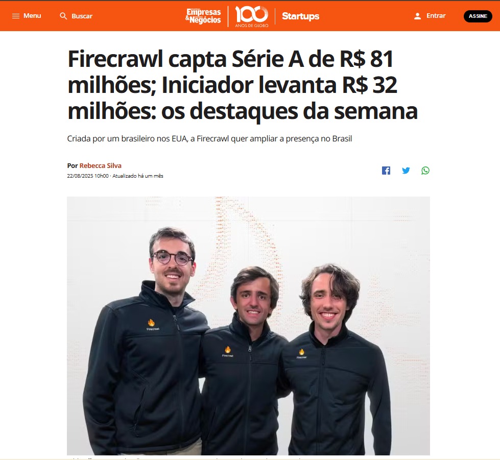 Co-fundador e CTO brasileiro da Firecrawl, startup acelerada pela Y Combinator que está revolucionando o acesso a dados da web para inteligência artificial. Sua plataforma inovadora, que transforma qualquer site em informação estruturada para LLMs, acaba de captar R$ 81 milhões em uma nova rodada de investimentos para expandir sua operação.
